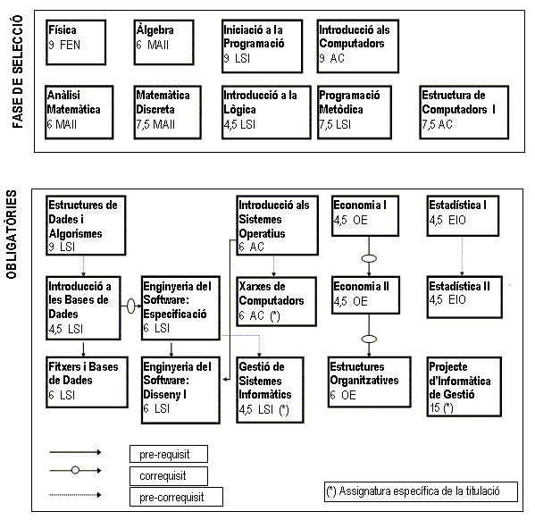 A continuació es mostra l'estructura de les assignatures obligatòries del pla d'estudis i enllaços a les assignatures: |