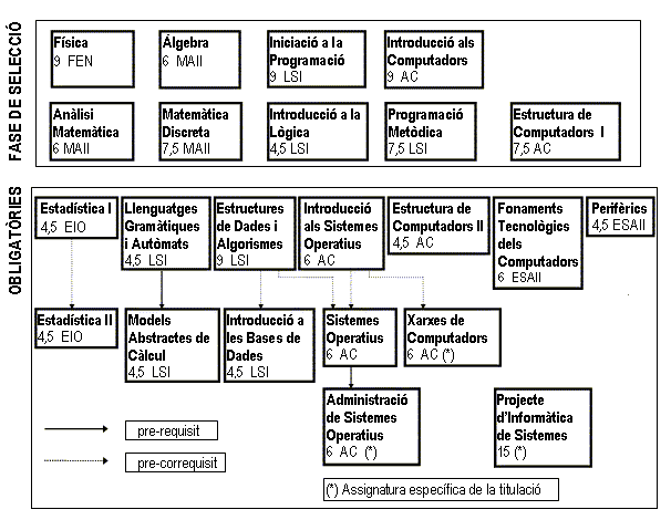 A continuació es mostra l'estructura de les assignatures obligatòries del pla d'estudis i enllaços a les assignatures: