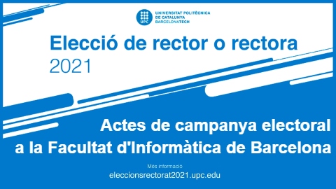 Del 29 d'abril al 12 de maig té lloc la campanya electoral de les eleccions a rector UPC. A la FIB està previst que els candidats presentin el seu programa a la comunitat els següents dies mitjançant actes de campanya en format híbrid: