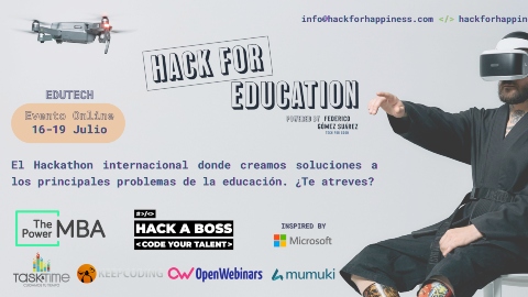 Hack For Happiness,  moviment benèfic inspirat en els valors de Tech For Good que té com a objectiu posar la tecnologia al servei de la societat, presenta la hackató Hack for Education, inspirada en la filosofia Microsoft. Els participants d’aquesta hackató, que serà en línia i gratuïta, hauran de desenvolupar una idea en grup, juntament amb un equip de mentors especialista en el tema, i presentar-la al jurat.