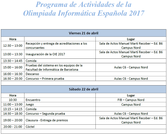Divendres 21 i dissabte 22 d'abril celebrem a la FIB una nova edició de la Olimpiada Informática Española.
