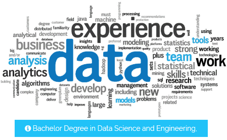 This degree aims to form expert professionals in analysis and engineering of structured and unstructured data (text, audio, video, medical tests, financial indicators, etc.), with a mathematical base and engineering skills that allow them to model and solve complex problems. It is an emerging field of work with applications as diverse as biomedical informatics, genomics, financial analytics, the study of physical phenomena, e-commerce, smart cities, sports or social networks, among others.